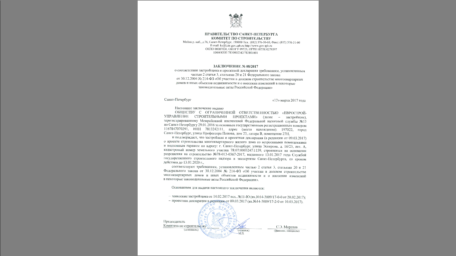 Ссылка на Проектную декларацию